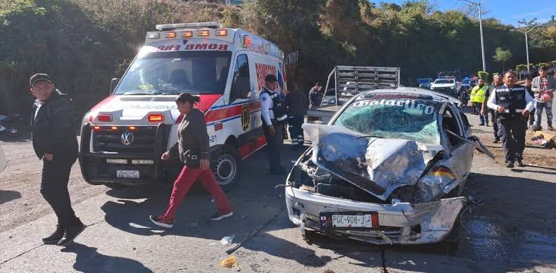 Paramédicos de Zitácuaro asisten a los lesionados para canalizarlos a recibir atención médica, en tanto personal de Tránsito del Estado realiza el respectivo peritaje para deslindar responsabilidades.