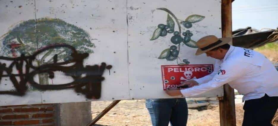 Valencia Reyes y los habitantes recorrieron ejidos, caminos rurales para alertar sobre estos artefactos explosivos, que son un riesgo para la población, campesinos y militares.