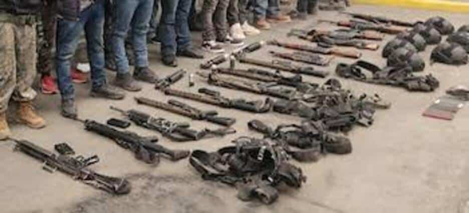 Según informaron las autoridades, 17 personas fueron detenidas y se aseguraron 14 armas largas, además de equipo táctico y explosivos.