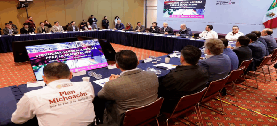 El Gobierno de México presentó en Michoacán el Certificado Laboral para la Agroexportación y la plataforma VELAGRO, un nuevo mecanismo que condiciona la exportación de aguacate a la verificación de mano de obra formal afiliada al IMSS en cada embarque. La medida se enmarca en el Plan Michoacán por la Paz y la Justicia y en el compromiso 63 de la presidenta Claudia Sheinbaum, orientado a ampliar la seguridad social de las y los jornaleros agrícolas.