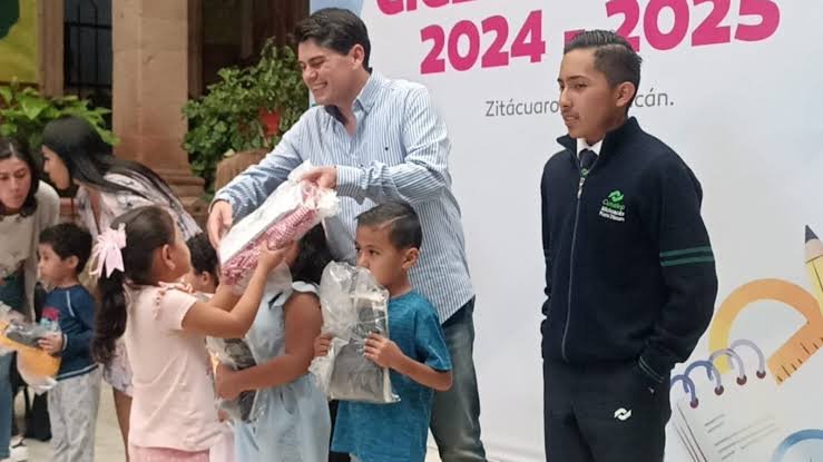 Juan Antonio Ixtláhuac Orihuela entrega uniformes y refrenda su apoyo a la educación
